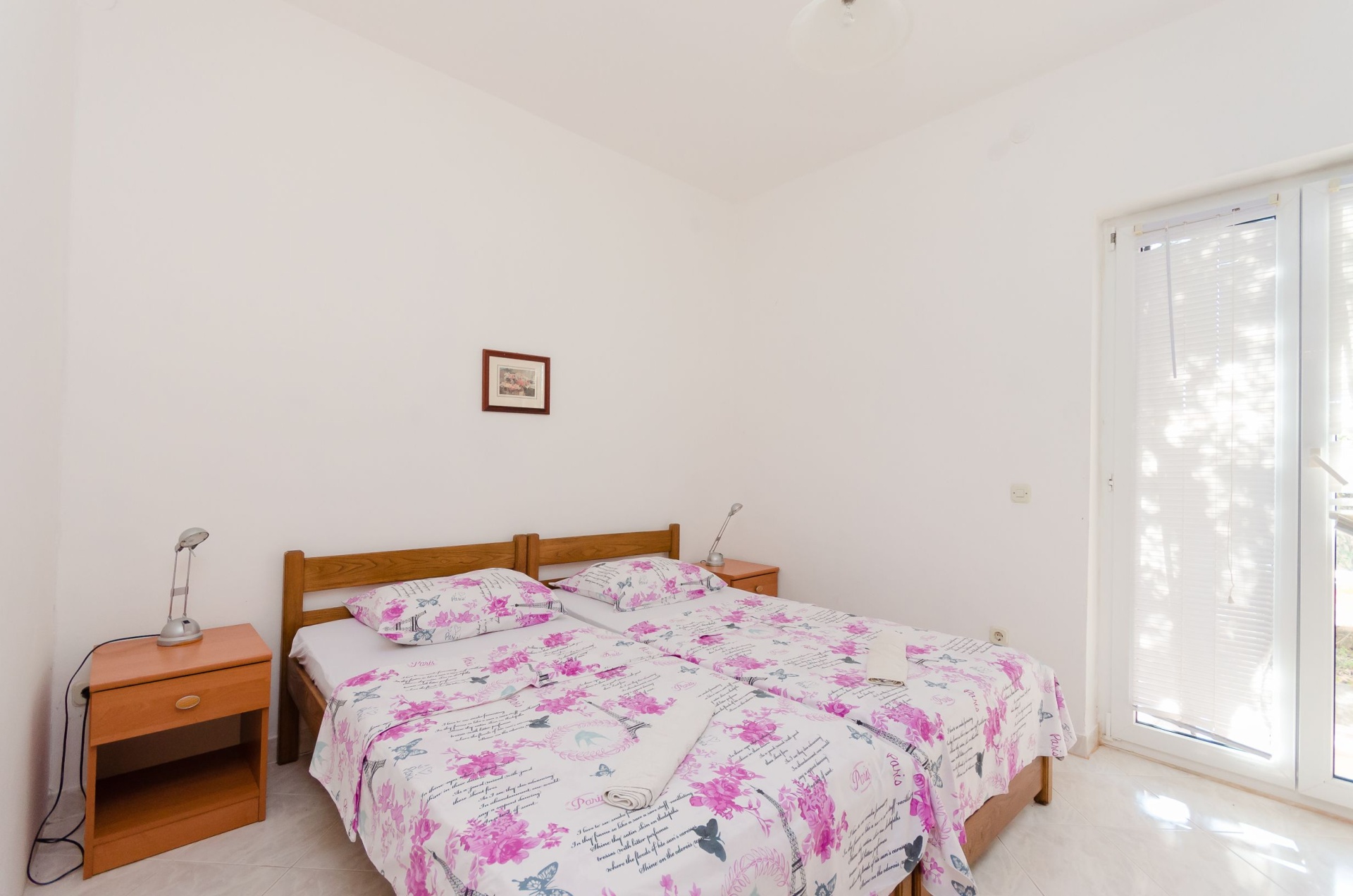 Apartman 4Fő Általános információ Kategória: 3 A dohányzás megengedett: Igen Emelet: földszint Típus: A2+2 Háziállatok: Háziállat barát szálláshely- az irodával történt előzetes egyeztetés alapján (felár a helyszínen a szállásadónak fizetendő) Felület: 42 m2 Kilátás: zöldövezetre, udvarra és csendes utcára Berendezés és felszereltség Fűtés: a helység része (felár a helyszínen fizetendő) Internet: vezeték nélküli Gyerekágy: kérésre Vasaló: kérésre Ágynemű és törölközők: Igen Önkiszolgáló bejelentkezés: Host check-in Az adott többletszolgáltatás felára a helyszínen fizetendő Háziállat: 5 €/nap Internet: felár nélkül Letéti díj a helyszínen fizetendő Megjegyzés: A szálláshely igénybevételének első napján a vendég köteles a szállásadónál 50 € letéti díjjt fizetni, amelyet a szállásfoglalás utolsó napján visszakap, amennyiben a szálláshelyet sértetlen állapotban adja vissza További információ és szolgáltatás Takarítás: vendégváltáskor Konyha és nappali Egyágyas ágyak száma: 2 Edények és evőeszközök: Igen Sütő: Igen Főzőlap: Igen Hűtőgép: Igen Fagyasztó: Igen A kert felszerletsége Erkély: 2 m2 Terasz: 10 m2 Udvar: 16 m2 Fürdőszoba információ Zuhanyzós fürdőszobák száma: 1 Hajszárító: kérésre Adatok a szobákról 1 Szoba kapacitás: 2 Kétszemélyes ágyak száma: 1 A szoba alapterülete: 11 m2 Terasz/Erkély: Igen