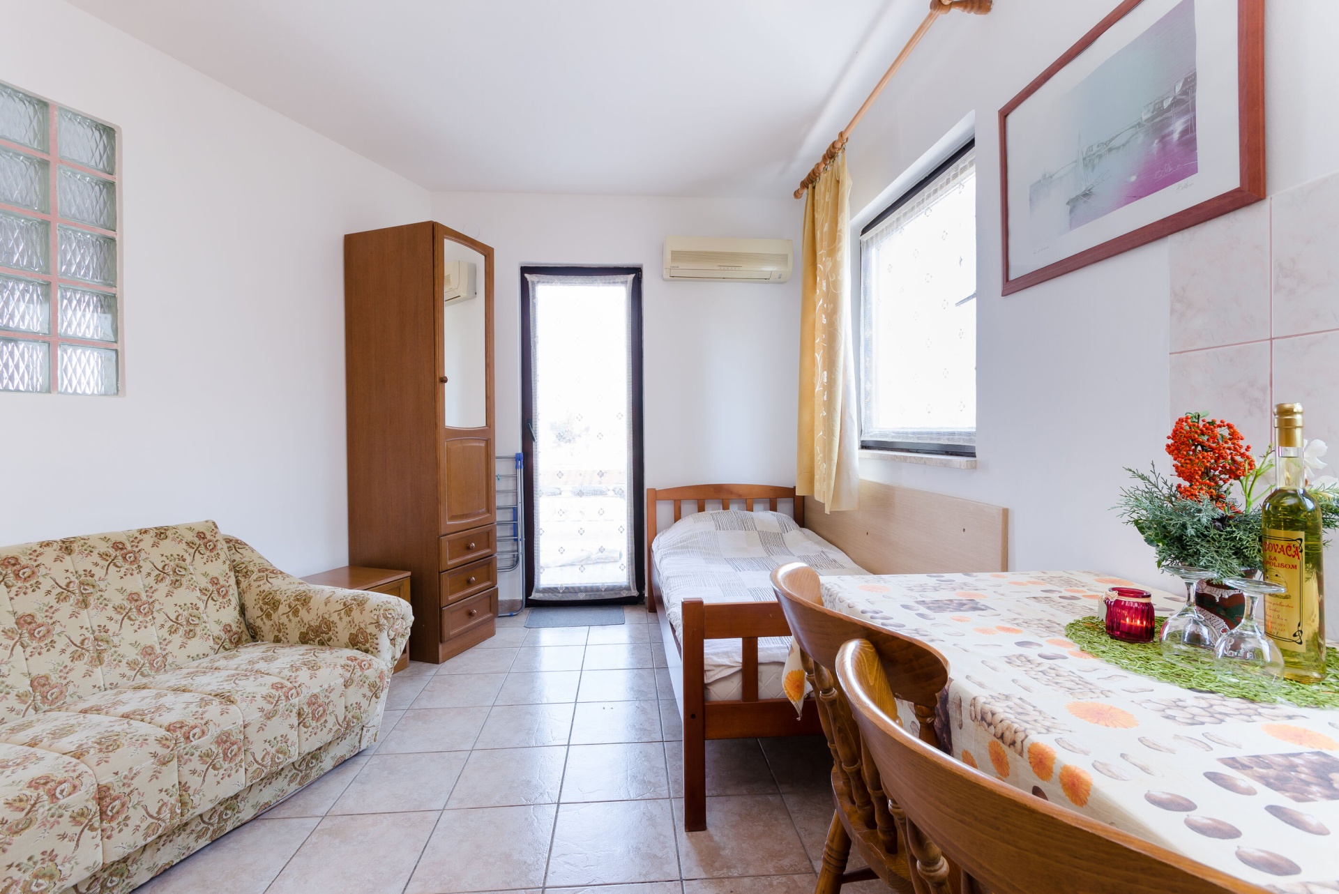 Apartman 4Fő Berendezés és felszereltség Klíma: helyiség része Gyerekágy: kérésre Vasaló: kérésre Fűtés: helyiség része Ágynemű és törölközők: Igen Internet: vezeték nélküli Önkiszolgáló bejelentkezés: Host check-in Mosógép: Igen Konyha és nappali Edények és evőeszközök: Igen Kávéfőző: Igen Hűtőgép: Igen Pótágyak száma (nappaliban, étkezőben, konyhában): 2 Főzőlap: Igen Sütő: Igen Általános információ Emelet: földszint Típus: A2+2 Háziállatok: Háziállat barát szálláshely- az irodával történt előzetes egyeztetés alapján (felár a helyszínen a szállásadónak fizetendő) Kilátás: udvarra Kategória: 3 Felület: 40 m2 Az adott többletszolgáltatás felára a helyszínen fizetendő Klíma: felár nélkül Fűtés: felár nélkül Internet: felár nélkül Háziállat: 8 €/nap Fürdőszoba információ Zuhanyzós fürdőszobák száma: 1 Hajszárító: kérésre A kert felszerletsége Terasz: 15 m2 Adatok a szobákról 1 Szoba kapacitás: 2 Kétszemélyes ágyak száma: 1 A szoba alapterülete: 10,00 m2