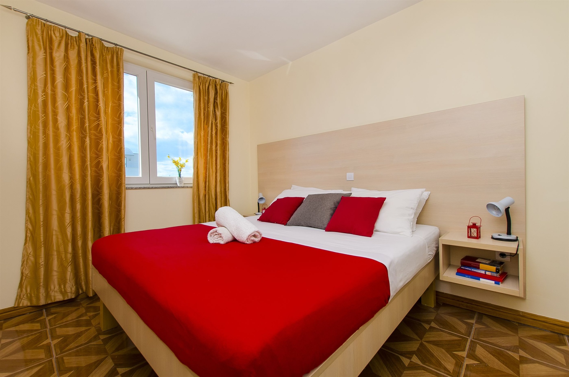 Apartman 4Fő Általános információ Kategória: 4 Emelet: második emelet Típus: A2+2 Felület: 50 m2 Kilátás: udvarra Berendezés és felszereltség Fűtés: helyiség része Klíma: helyiség része Internet: vezeték nélküli Széf: Igen Gyerekágy: kérésre Vasaló: kérésre Ágynemű és törölközők: Igen Önkiszolgáló bejelentkezés: Host check-in Az adott többletszolgáltatás felára a helyszínen fizetendő Klíma: felár nélkül Fűtés: felár nélkül Internet: felár nélkül Konyha és nappali Pótágyak száma (nappaliban, étkezőben, konyhában): 2 Edények és evőeszközök: Igen Sütő: Igen Főzőlap: Igen Hűtőgép: Igen Fagyasztó: Igen Mikrohullámú sütő: Igen Vízforraló: Igen A kert felszerletsége Erkély: 3 m2 Fürdőszoba információ Zuhanyzós fürdőszobák száma: 2 Adatok a szobákról 1 Szoba kapacitás: 2 Kétszemélyes ágyak száma: 1 A szoba alapterülete: 14 m2
