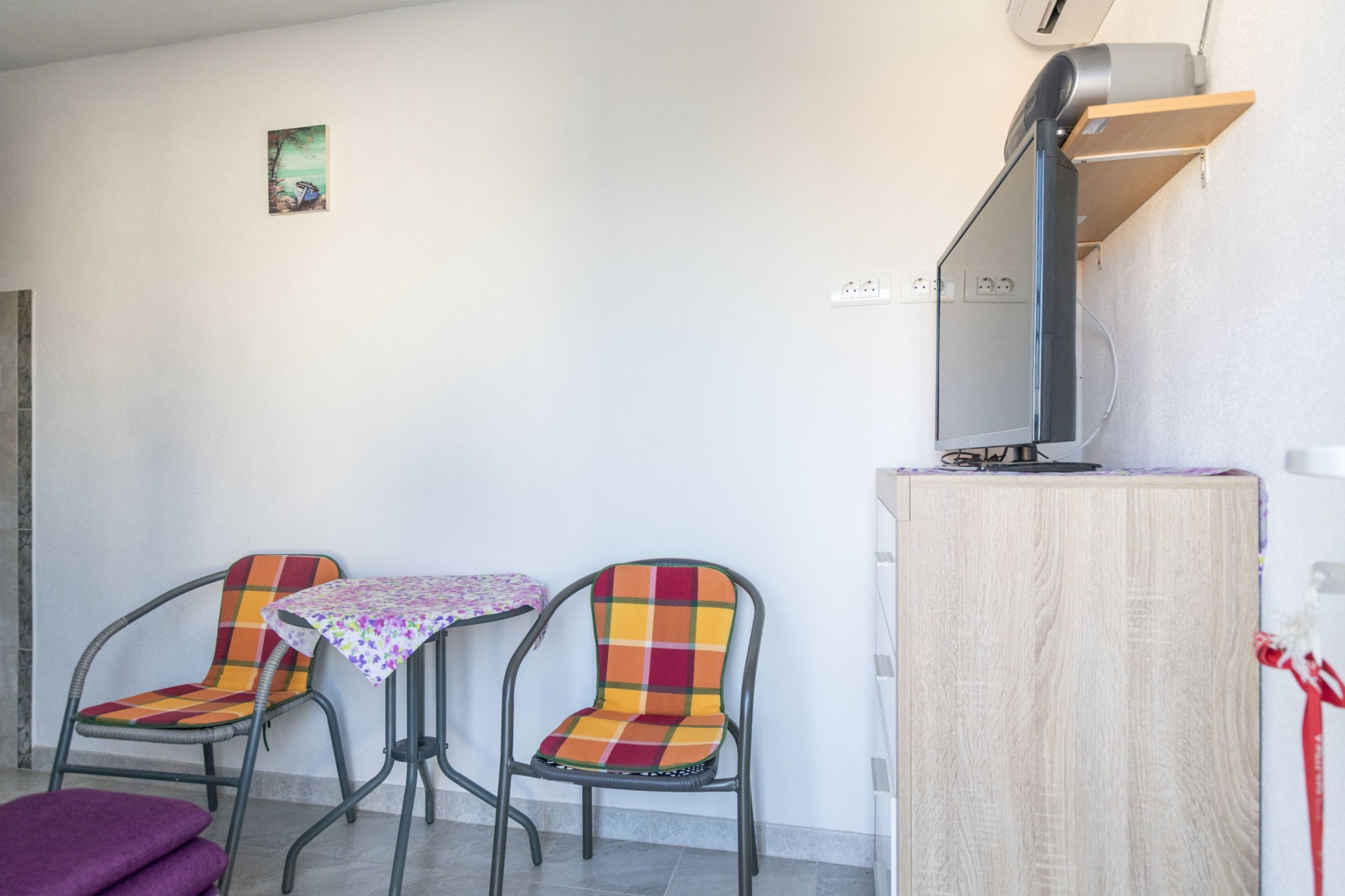 Apartman 2Fő Általános információ Emelet: földszint Kilátás: tengerre és zöldövezetre Kategória: 3 Típus: STUDIO Felület: 20 m2 Berendezés és felszereltség Klíma: helyiség része Ágynemű és törölközők: Igen Önkiszolgáló bejelentkezés: Host check-in Internet: vezeték nélküli Az adott többletszolgáltatás felára a helyszínen fizetendő Internet: felár nélkül Klíma: felár nélkül Konyha és nappali Főzőlap: Igen Edények és evőeszközök: Igen Hűtőgép: Igen Vízforraló: Igen A kert felszerletsége Kültéri zuhanyzó: Igen Terasz: 8 m2 Stúdió apartman Ágyak száma: 2 Extra ágy: 2 Fürdőszoba információ Hajszárító: Igen Zuhanyzós fürdőszobák száma: 1 További információ és szolgáltatás Takarítás: vendégváltáskor