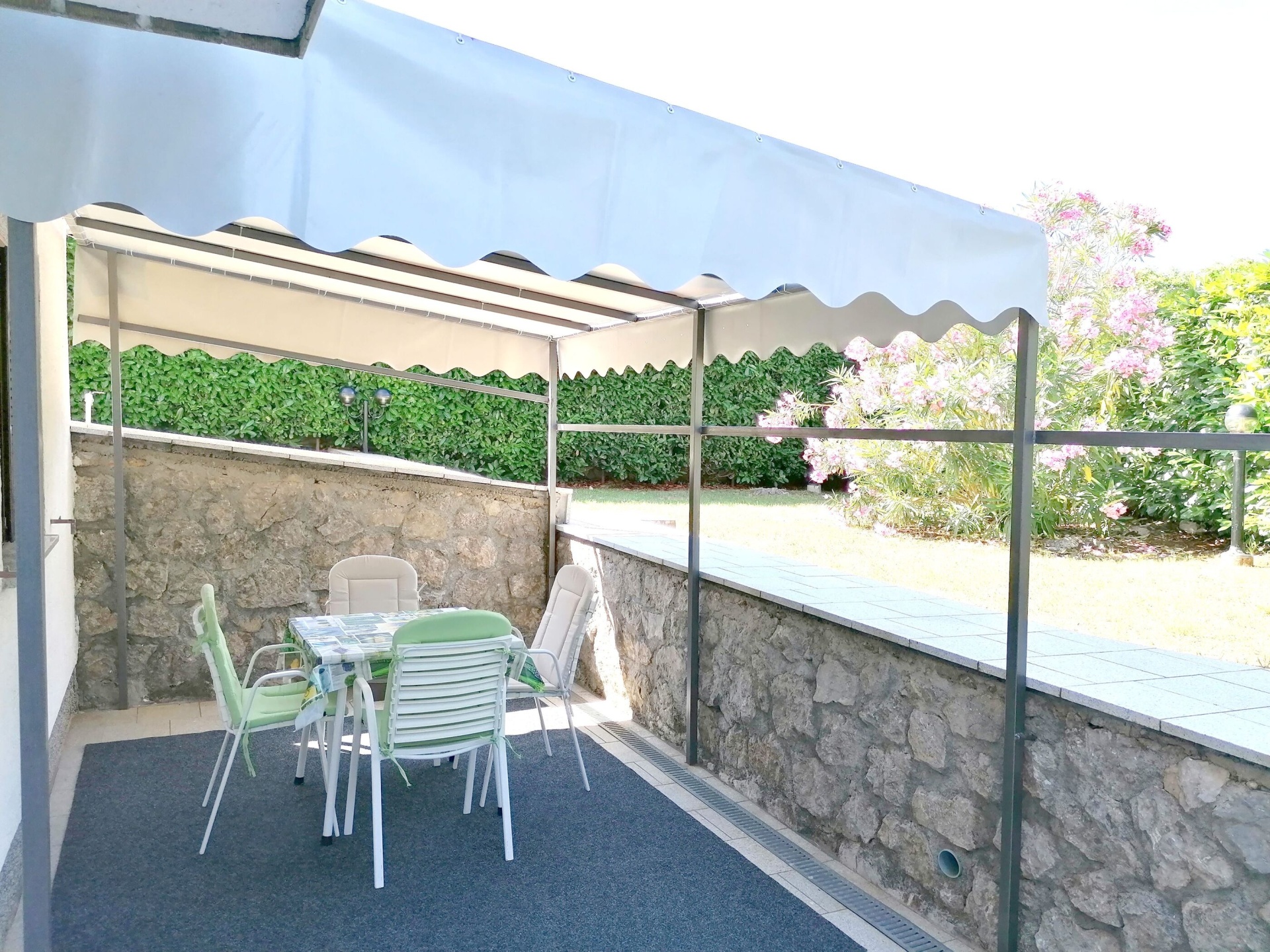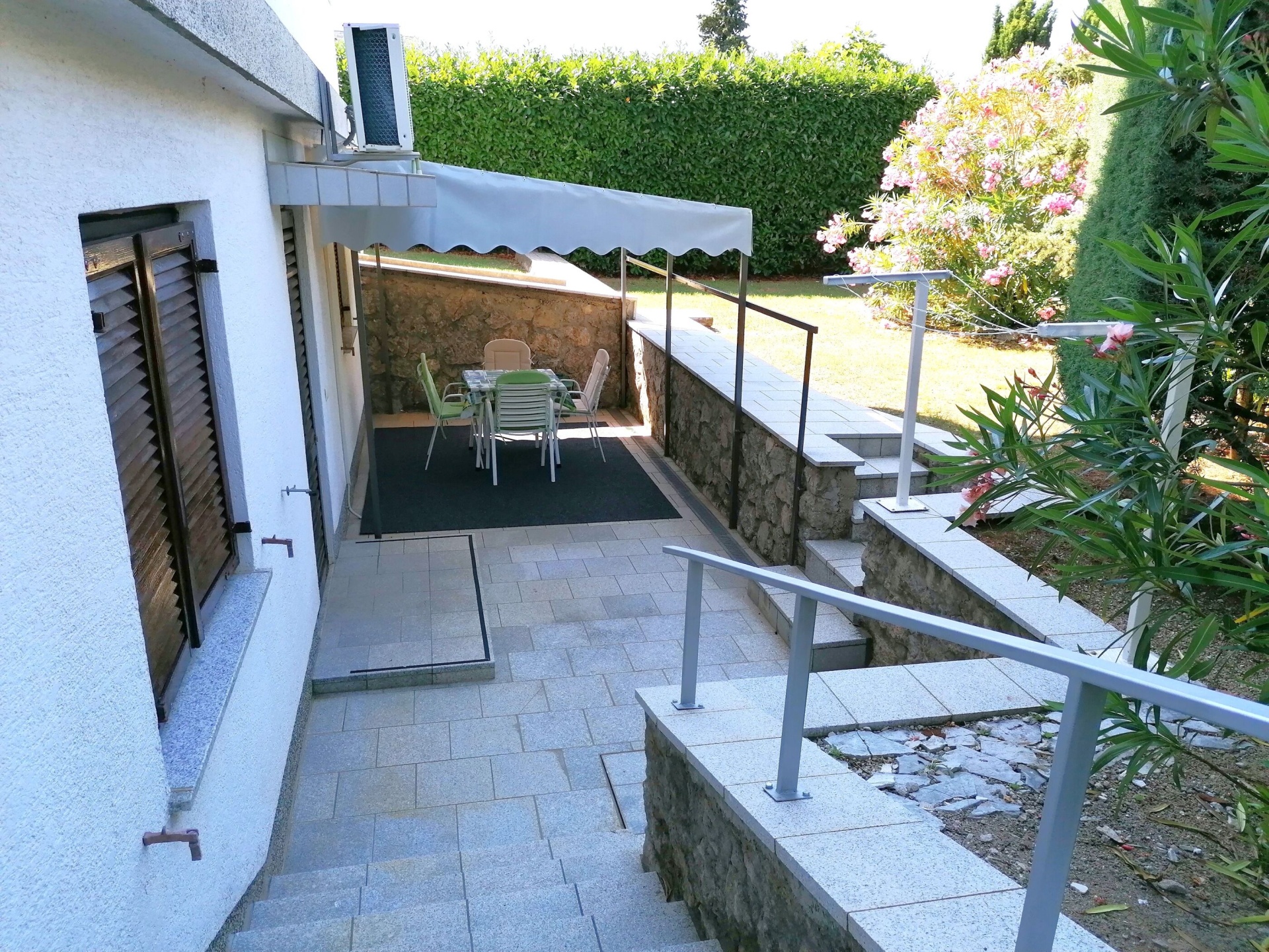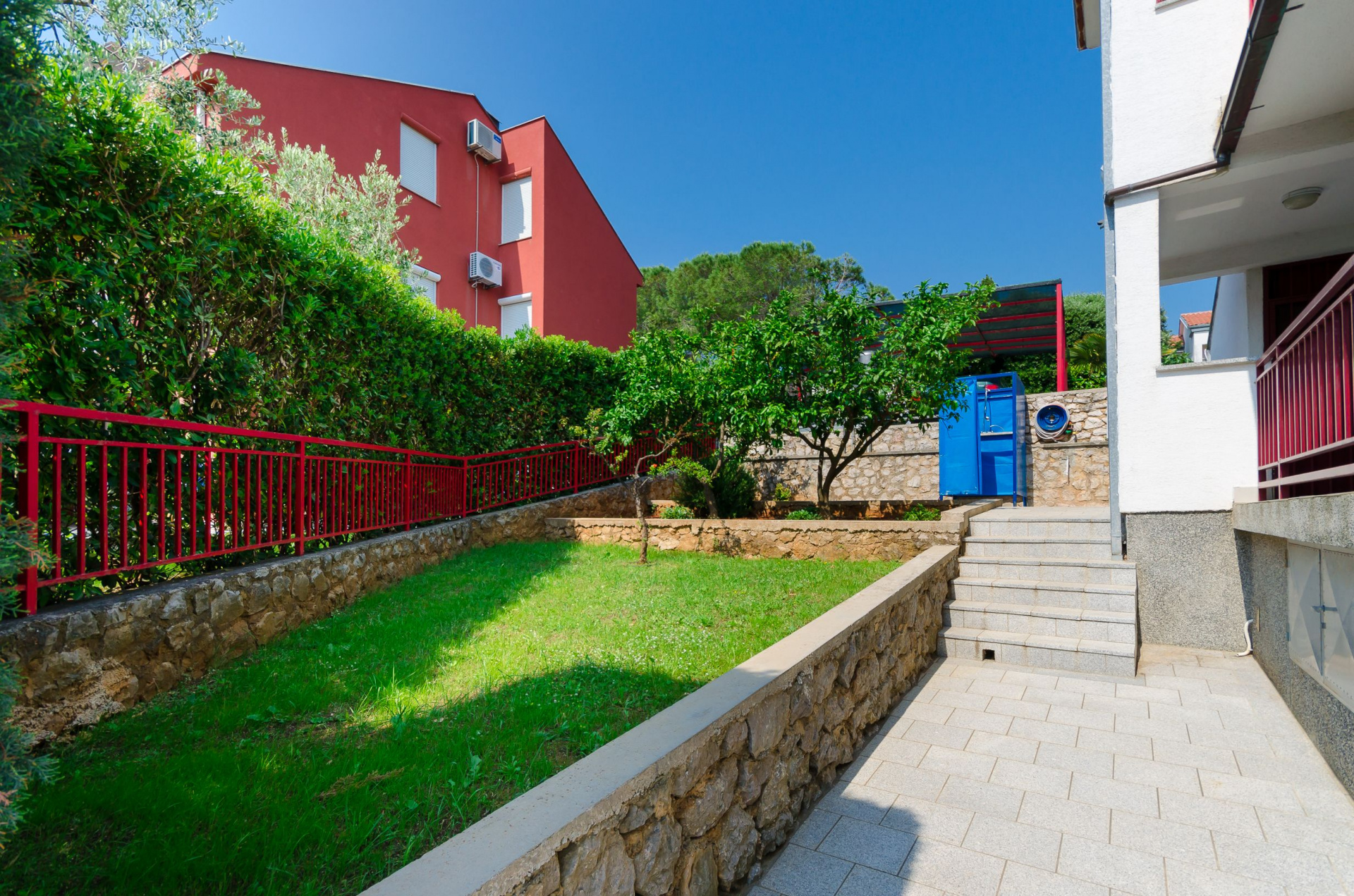 Apartman 5Fő Általános információ Kategória: 3 Emelet: földszint Típus: A4+1 Az apartman mérete: 56 m2 Kilátás: zöldövezetre Berendezés és felszereltség Fűtés: helyiség része Klíma: az összes szoba Radiókészülék: Igen Internet: Igen Gyerekágy: irodával történt előzetes megbeszélés szerint Vasaló: Igen Mosógép: Igen Ágynemű és törölközők: Igen Az adott többletszolgáltatás felára a helyszínen fizetendő Klíma: felár nélkül Fűtés: felár nélkül Internet: felár nélkül További információ és szolgáltatás Takarítás: vendégváltáskor Balkon/terasz/kert Terasz: 50 m2 Kültéri zuhanyzó: Igen Fürdőszoba információ Hajszárító: Igen Zuhanyzós fürdőszobák száma: 1 Konyha és nappali Edények és evőeszközök: Igen Mikrohullámú sütő: Igen Hűtőgép: Igen Fagyasztó: Igen Főzőlap: Igen Kávéfőző: Igen Sütő: Igen Mosogatógép: Igen Adatok a szobákról 1 Szoba kapacitás: 2,00 Kétszemélyes ágyak száma: 1,00 A szoba alapterülete: 11,10 m2 Adatok a szobákról 2 Pótágyak száma: 1 Terasz/Erkély: Igen A szoba alapterülete: 15,75 m2 Szoba kapacitás: 3 Kétszemélyes ágyak száma: 1,00