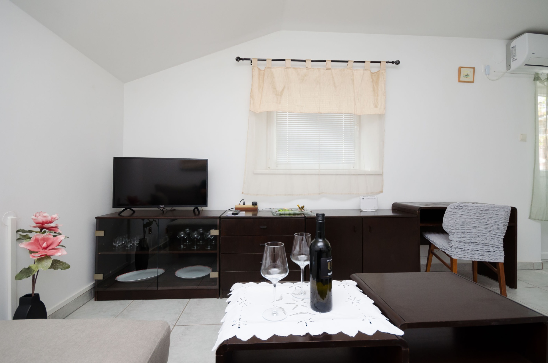 Apartman 3Fő Általános információ Kategória: 3 Emelet: földszint Típus: A2+1 Háziállatok: Háziállat barát szálláshely- az irodával történt előzetes egyeztetés alapján (felár a helyszínen a szállásadónak fizetendő) Felület: 35 m2 Kilátás: zöldövezetre és udvarra Berendezés és felszereltség Fűtés: helyiség része Klíma: helyiség része Internet: vezeték nélküli Gyerekágy: kérésre Vasaló: Igen Ágynemű és törölközők: Igen Önkiszolgáló bejelentkezés: Host check-in Az adott többletszolgáltatás felára a helyszínen fizetendő Háziállat: 5 €/nap Klíma: felár nélkül Fűtés: felár nélkül Internet: felár nélkül Konyha és nappali Pótágyak száma (nappaliban, étkezőben, konyhában): 1 Edények és evőeszközök: Igen Sütő: Igen Főzőlap: Igen Hűtőgép: Igen Fagyasztó: Igen Mikrohullámú sütő: Igen Kávéfőző: Igen Vízforraló: Igen A kert felszerletsége Terasz: 10 m2 Fürdőszoba információ Zuhanyzós fürdőszobák száma: 1 Hajszárító: Igen Adatok a szobákról 1 A szoba alapterülete: 10 m2 Kétszemélyes ágyak száma: 1 Szoba kapacitás: 2
