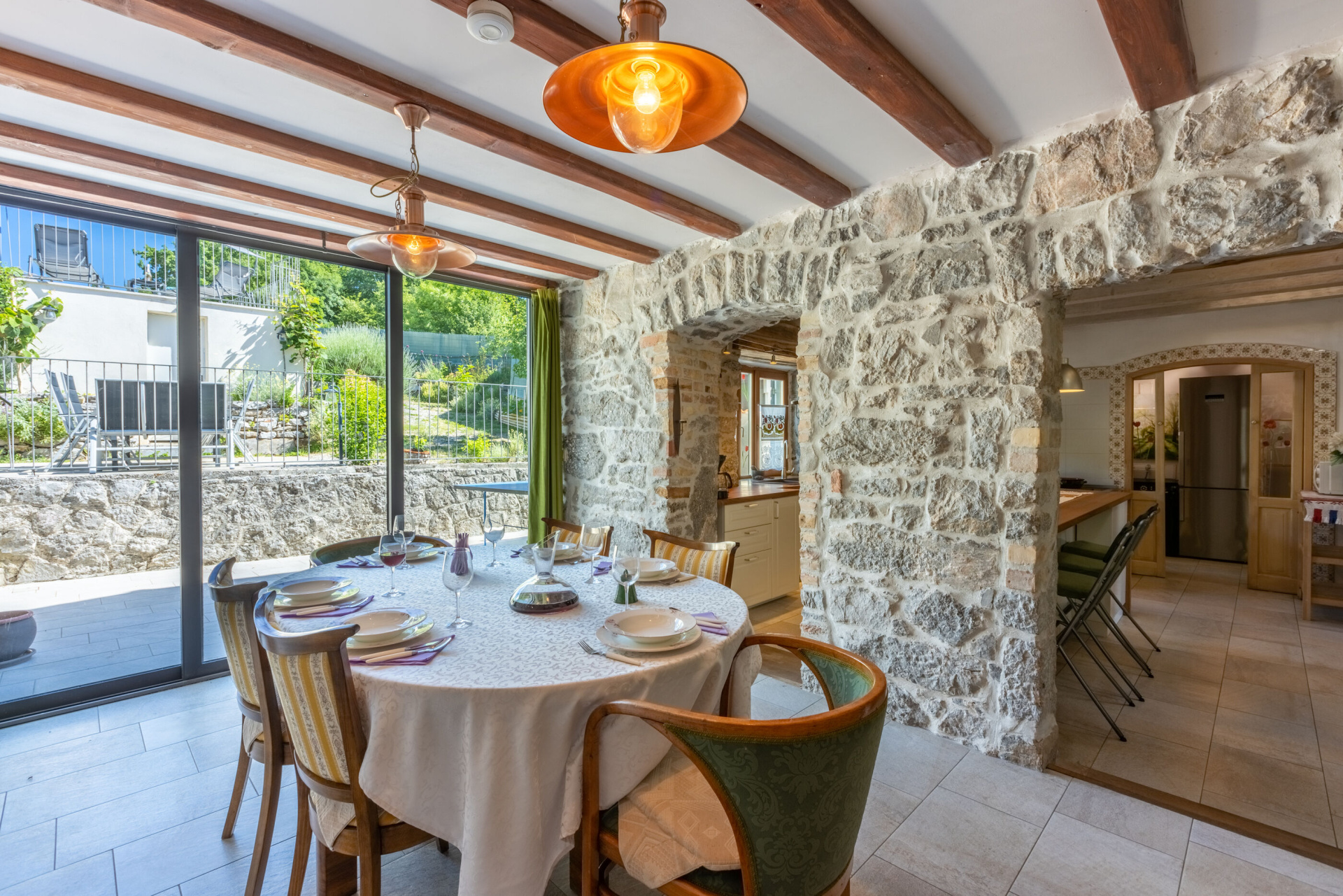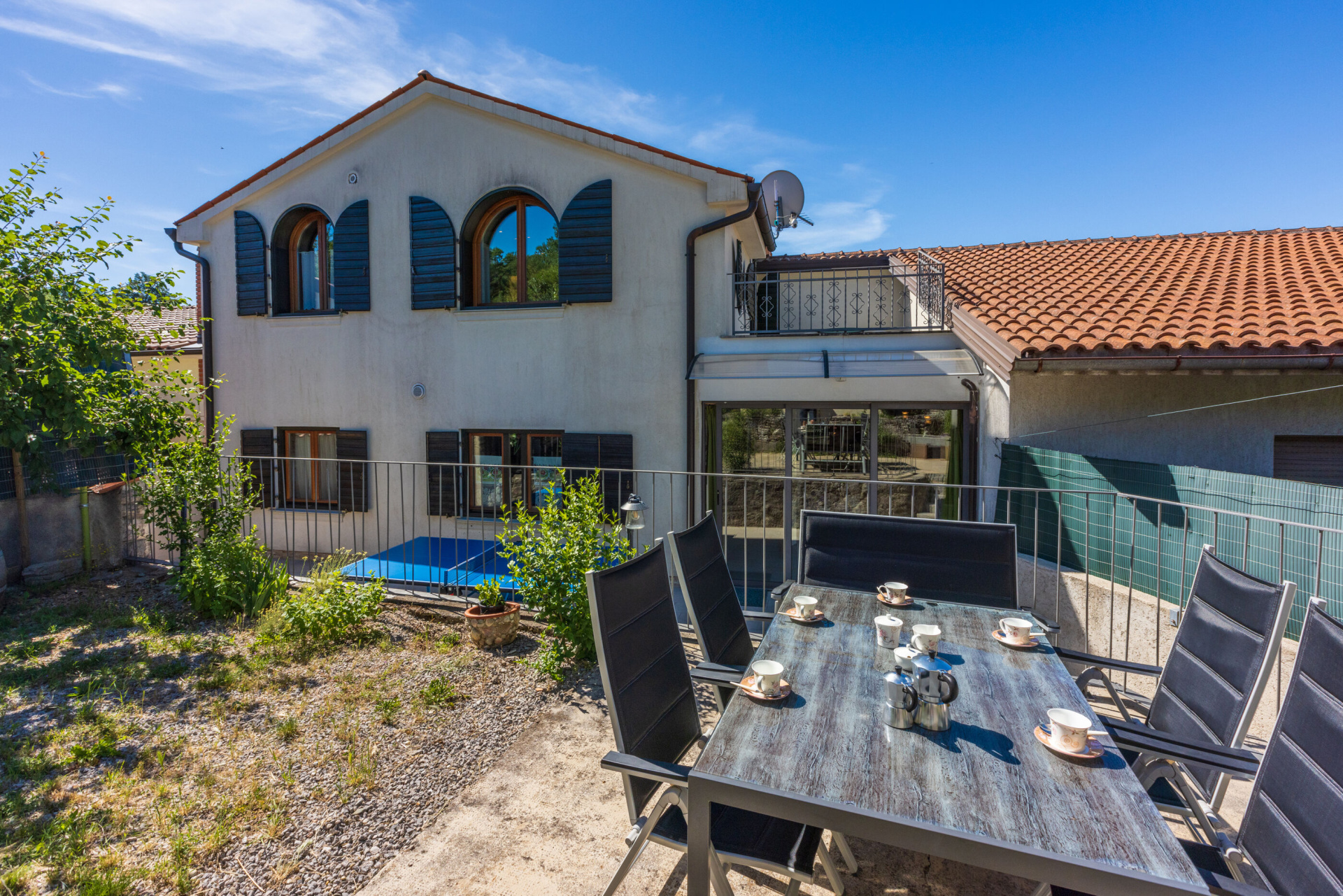 Egyéb 6Fő Általános információ Kategória: 5 Emelet: földszint Típus: A6 Felület: 170 m2 Kilátás: zelenu površinu i planinu Berendezés és felszereltség Fűtés: helyiség része Klíma: helyiség része Radiókészülék: Igen Internet: vezeték nélküli Széf: Igen Vasaló: Igen Mosógép: Igen Ágynemű és törölközők: Igen Önkiszolgáló bejelentkezés: Host check-in Az adott többletszolgáltatás felára a helyszínen fizetendő Klíma: felár nélkül Fűtés: felár nélkül Internet: felár nélkül Letéti díj a helyszínen fizetendő Megjegyzés: A szálláshely igénybevételének első napján a vendég köteles a szállásadónál 200 € letéti díjjat hagyni, amelyet a szállásfoglalás utolsó napján visszakap, amennyiben a szálláshelyet sértetlen állapotban adja vissza További információ és szolgáltatás Takarítás: vendégváltáskor A kert felszerletsége A ház körüli kert alapterülete/vrta: 2000 m2 Kerítéssel vagy élósövénnyel elkerített kert: Igen Kültéri zuhanyzó: Igen Kerti ülőgarnitúra: Igen Konyha és nappali Edények és evőeszközök: Igen Sütő: Igen Főzőlap: Igen Hűtőgép: Igen Fagyasztó: Igen Mikrohullámú sütő: Igen Kávéfőző: Igen Vízforraló: Igen Toszter: Igen Mosogatógép: Igen Stúdió apartman Ágyak száma: 6 Fürdőszoba információ Fürdőkádas fürdőszobák száma: 1 Zuhanyzós fürdőszobák száma: 2 Hajszárító: Igen Adatok a szobákról 1 A szoba alapterülete: 18 m2 Szoba kapacitás: 2 Franciaágyak száma: 1 Adatok a szobákról 2 A szoba alapterülete: 18 m2 Kétszemélyes ágyak száma: 1 Szoba kapacitás: 2 Adatok a szobákról 3 A szoba alapterülete: 15 m2 Kétszemélyes ágyak száma: 1 Szoba kapacitás: 2