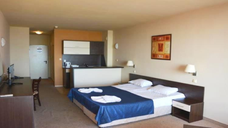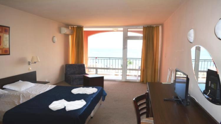 Fekvés: Napospart északi részén, közvetlenül a tengerparton, a városközpont zajától távol található.