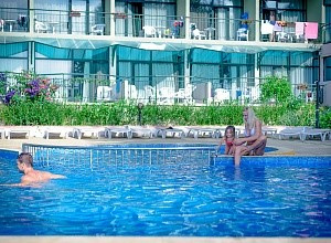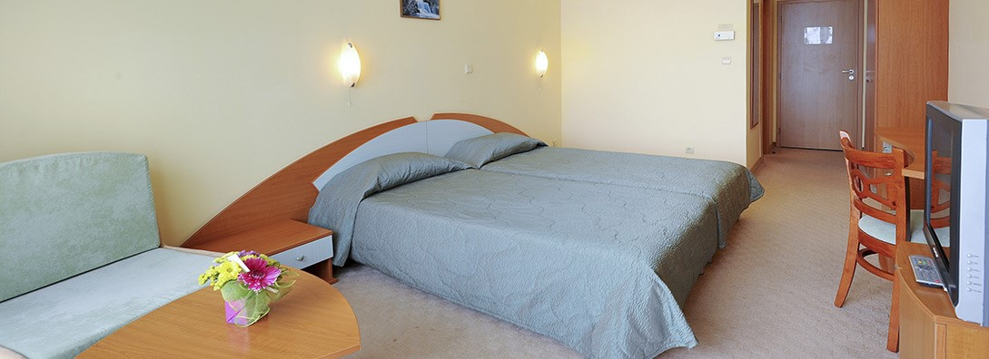 A szálloda Aranyhomok központjában, a tengerparttól 30 m-re található. A szálloda éttereme nemzetközi és bolgár specialitásokkal, ingyenes WIFI, lobby bár, fittness, kültéri medence gyerekek részére kialakított pancsolóval, játszótér, napozó ágyak, napernyők a medencénél és a tengerparton (korlátozott számban), gyermekklub, masszázs, bowling, tenisz, vizi sportok (térítés ellenében) áll a vendégek rendelkezésére.