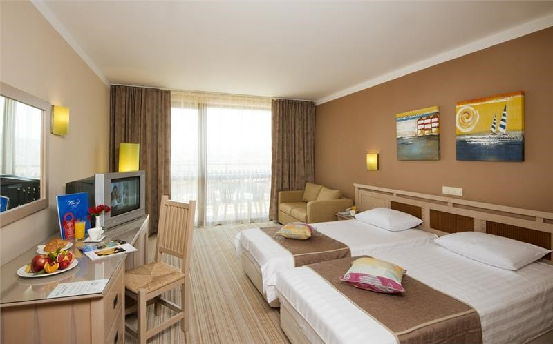 A szálloda közvetlenül a tengerparton helyezkedik el, Obzor központjától kb. 1000 m-re. A 2017-ben felújított szállodában éttermek, a la carte étterem (hal étterem, olasz étterem - előfoglalással), bárok (lobby bár, snack pool bár), szabadtéri medence, gyerekpancsoló, játszótér, strand röplabda, vízi sportolási lehetőségek (térítés ellenében) várják a vendégeket. Internet térítés ellenében vehető igénybe. Törölköző, napágy és napernyő a szálloda előtt a tengerparton és a medencénél, szauna, gőzfürdő, fitnesz terem, asztali tenisz, billiárd, darts, mini bárban ásványvíz, sör, üdítő, élőzene és esti show programok, gyerekek részére Mini Kid Club animációs programokkal.