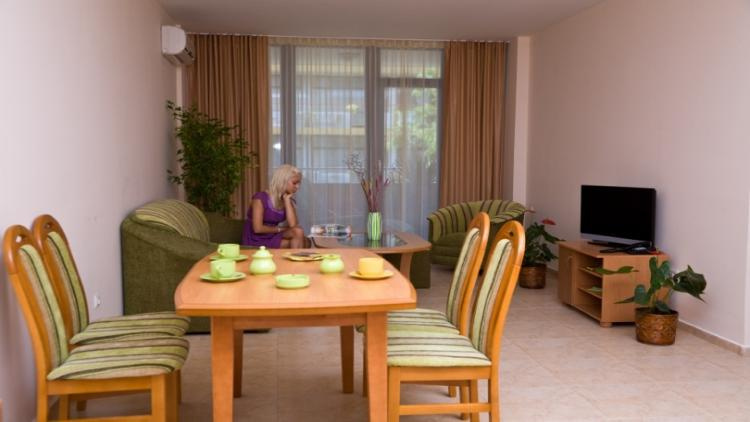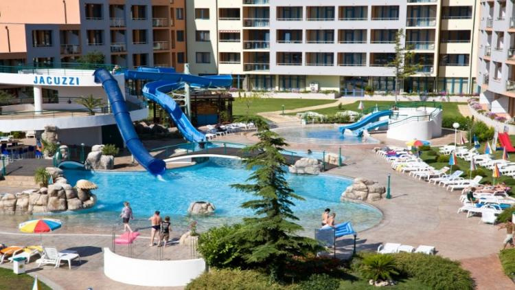 Napospart központjától 500 m-re, a strandtól pedig kb. 250 m-re fekvő, minden igényt kielégítő komplexum. Az apartmanok a hotel melletti épületben kaptak helyet.