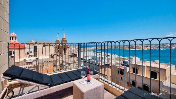 A penthouse lakosztály körülbelül 57 m?-es, elegáns kialakítású, nappali és hálószoba optikailag elválasztva található benne. Két fürdőszobával rendelkezik - az egyik zuhannyal, a másik káddal felszerelt -, továbbá műholdas televízió, széf, Nespresso kávéfőző, erkély vagy terasz is tartozik hozzá, kilátással Vallettára és a kikötőre.