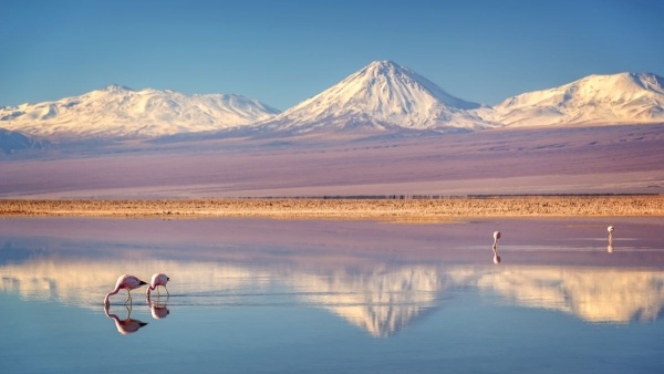 6. nap o San Pedro de Atacama - Altiplano - Atacama sós síkságReggeli után utazás a San Pedro Atacamától kb. kétórás távolságra lévő Altiplano (Bolíviai-magasföld) lagúnáihoz, Miningueshez és Miscantihoz. A Los Flamencos Nemzeti Rezervátum területén, 4200 méteres magasságban fekvő lagúnák az Andok vulkanikus hegyei között megbúvó, lenyűgöző szépségű természeti képződmények, melyek ökológiai jelentőségükről is ismertek. Mélykék vizük, a sárgás színű sivatagi növényzet és a hófödte hegycsúcsok drámai kontrasztja miatt a hely népszerű fotótéma. Kb. másfél órás gyalogtúra a két lagúna között. Ebéd Socaire faluban. Délután leereszkedés autóbusszal az Atacama sós síkságra, mely repedezett sókéregével holdbéli tájra emlékeztet; látogatás a Chaxa-lagúnához, séta a sómezőkön, 45 perces gyalogtúra a flamingók megfigyelésére. Visszautazás San Pedro de Atacamába Toconao falu érintésével. Szállás San Pedro de Atacamában.