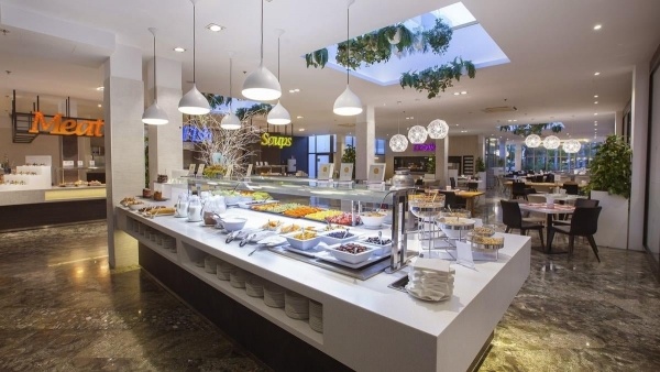 Ellátás:24 órás All inclusive ellátás 3 étteremben: Saborea főétterem - svédasztalos étkezés, etetőszék a gyerekeknek. Snack and Go - olasz ételek, hamburgerek, egészséges ételek, különféle gyümölcs- és zöldségturmixok. Abora 24/7 - hallban található büfé, amely a nap 24 órájában nyitva tart. Itt édességeket, péksüteményeket, kétféle szendvicset, valamint alkoholos és alkoholmentes italokat fogyaszthat. Ezenkívül 3 bár található a hotelben: egy a teraszon a lobbynál, kettő pedig a medencékhez közel.