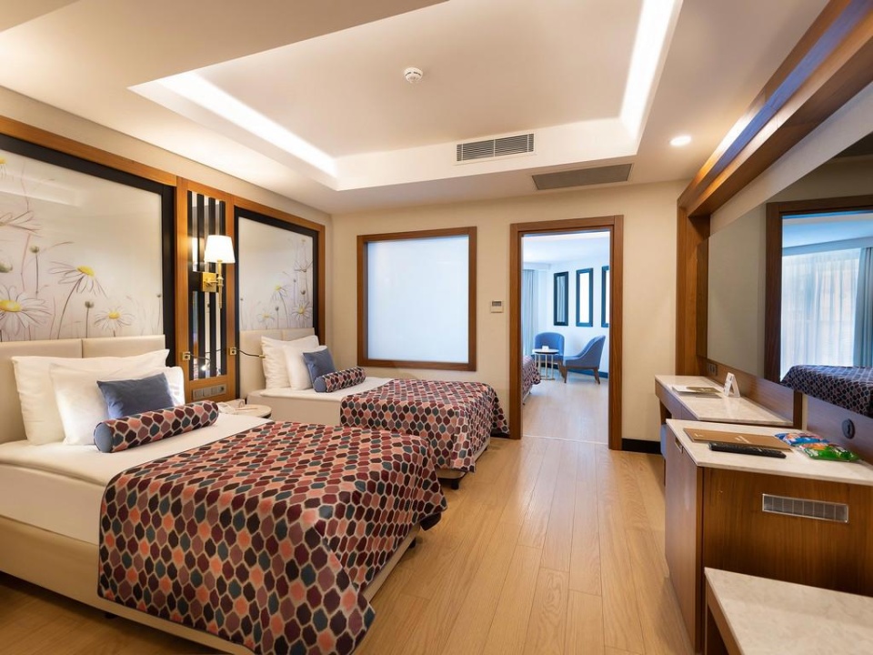 ELHELYEZKEDÉS: Lara • Antalya belvárosa kb. 15 km • Antalya repülőtér kb. 10 km • a szálloda kb. 45.000 m²-es területen fekszik • mozgáskorlátozottak számára kialakított szoba