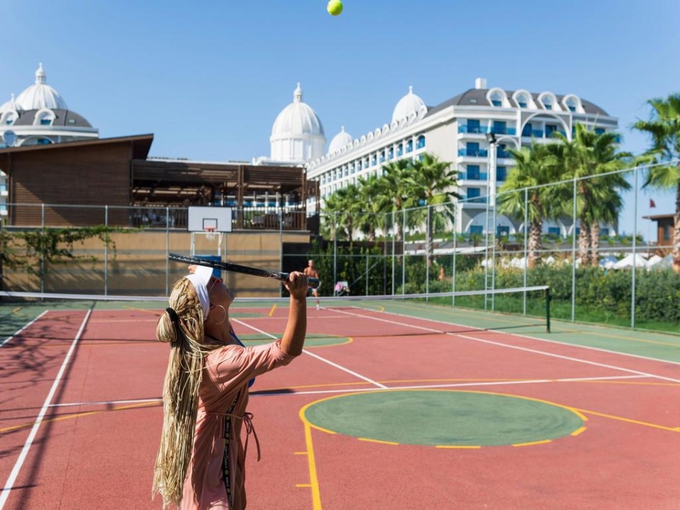 SZOLGÁLTATÁSOK: medencék napernyőkkel és napozóágyakkal • felnőtteknek kialakított relax medence • beltéri medence • aquapark • főétterem • bárok (lobby, medence, tengerpart...) • cukrászda • animációs programok • fitneszterem • asztalitenisz • darts • strandröplabda • boccia • step-aerobik • gimnasztika • vízi torna • mini könyvtár • törökfürdő • szauna • wifi