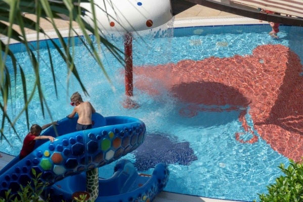 - Felnőtt és gyermekmedence napozóágyakkal és napernyőkkel, beltéri medence, aquapark 3 csúszdával, nappali és esti animációs programok, mini klub (4-12 éveseknek), mini disco, törökfürdő, szauna, fitneszterem, aerobic, vízi torna, asztalitenisz, darts, boccia, strandröplabda, WiFi elérhetőség.