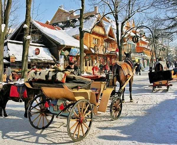 Reggeli után látogatás Lengyelország legkedveltebb hegyi üdülőközpontjába, a Lengyel-Tátra fővárosába, Zakopaneba. Séta a górál stílusú házak között, a híres Szent Kelemen fatemplom megtekintése, majd siklóval jutunk fel az 1128 m-es Gubalowka hegyre (kb. 38 pln/fő), ahonnan gyönyörű kilátás nyílik a városra és az azt körülölelő hegyekre. Itt fenn a hegyen bazár, éttermek és lovaskocsisok vagy lovasszánosok várnak. Érdemes egyet sétálni a kiépített ösvényen, vagy csak ücsörögni egy kicsit valamely kilátóteraszon, magunkba szívni a jó levegőt és a Tátra szépségeit! Majd irány az adventi forgatag és piac: forralt bor, gyömbéres forró sör, frissen sült sütemények illata lengi be a levegőt. Ízletes, tradicionális sajtokat, faszénen sült húsokat kóstolhatunk, helyi kézműves portékákat, faárukat, szépen kidolgozott bőr- és irhaárukat, na meg a jól ismert tejkaramellát is megtaláljuk itt. Az adventi időszak Zakopaneban igazán különleges élmény: múltidéző barangolás egy mesebeli tájon, ahol minden természetesebb, csendesebb, harmonikusabb, mint a nagyvárosokban. Garantált az ünnepre való hangolódás! Hazautazás, érkezés a késő esti/éjjeli órákban.