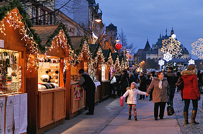 Délelőtt érkezünk Kassára, ahol helyi idegenvezető vezetésével megismerkedünk a várossal. Kassa manapság is jelentős igazgatási és kulturális központ. Rákóczi és Márai városa nem csak emlékeivel, hanem élénk kulturális életével, sokszínű hagyományaival is csábítja az ide látogatókat. A belváros legimpozánsabb emléke a Szent Erzsébet dóm, melynek kriptájában II. Rákóczi Ferenc és társai nyugszanak. A szomszédos Szent Mihály kápolna, az Orbán-torony, a Nemzeti Színház épülete és a Főtéren sorakozó paloták és templomok megtekintése mellett érdemes a Miklós-börtön és a Rodostói-ház felé is tenni egy kitérőt. Utóbbi a bujdosó fejdelem rodostói ebédlőházának elemeiből épület fel a városfal egyik megmaradt bástyájára. A városnézés mellett szabadprogram is bőségesen rendelkezésre áll a karácsonyi vásár kínálatának feltérképezésére és a város további nevezetességeinek felfedezésére. A helyi adventi ünnepségsorozat hagyományosan Szent Miklós ünnepének előestéjén, december 5-én kezdődik a polgármester köszöntőjével és az ünnepi fények felgyújtásával a város hatalmas közös fenyőfáján, majd egészen december 23-ig hívogató forralt bor és sültkolbász illat lengi be a városközpontot. Az adventi vásár mellett Kassa belvárosában hagyományos üzletek, bevásárlóközpontok is találhatók, így remek lehetőség adódik a karácsonyi ajándékok beszerzésére is.