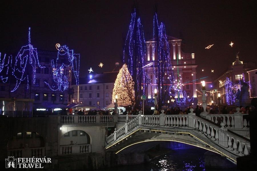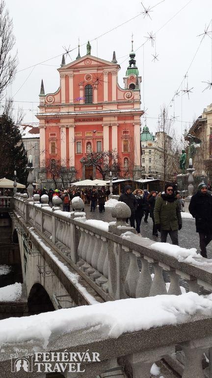 Elutazás Budapestről reggel 6 órakor a Déli pályaudvartól. Székesfehérvárról az autóbusz 7 órakor indul a Piac téri parkolóból. Utazás a Siófok – Nagykanizsa – Tornyiszentmiklós – Celje – Ljubljana útvonalon. Városnézés a téli pompájú szlovén fővárosban: Székesegyház, Hármashíd, Prešeren tér, középkori negyed, Városháza, Nemzeti Könyvtár stb. A közös séta után szabad program, lehetőség felmenni a várba, illetve barangolásra a hangulatos belvárosban.