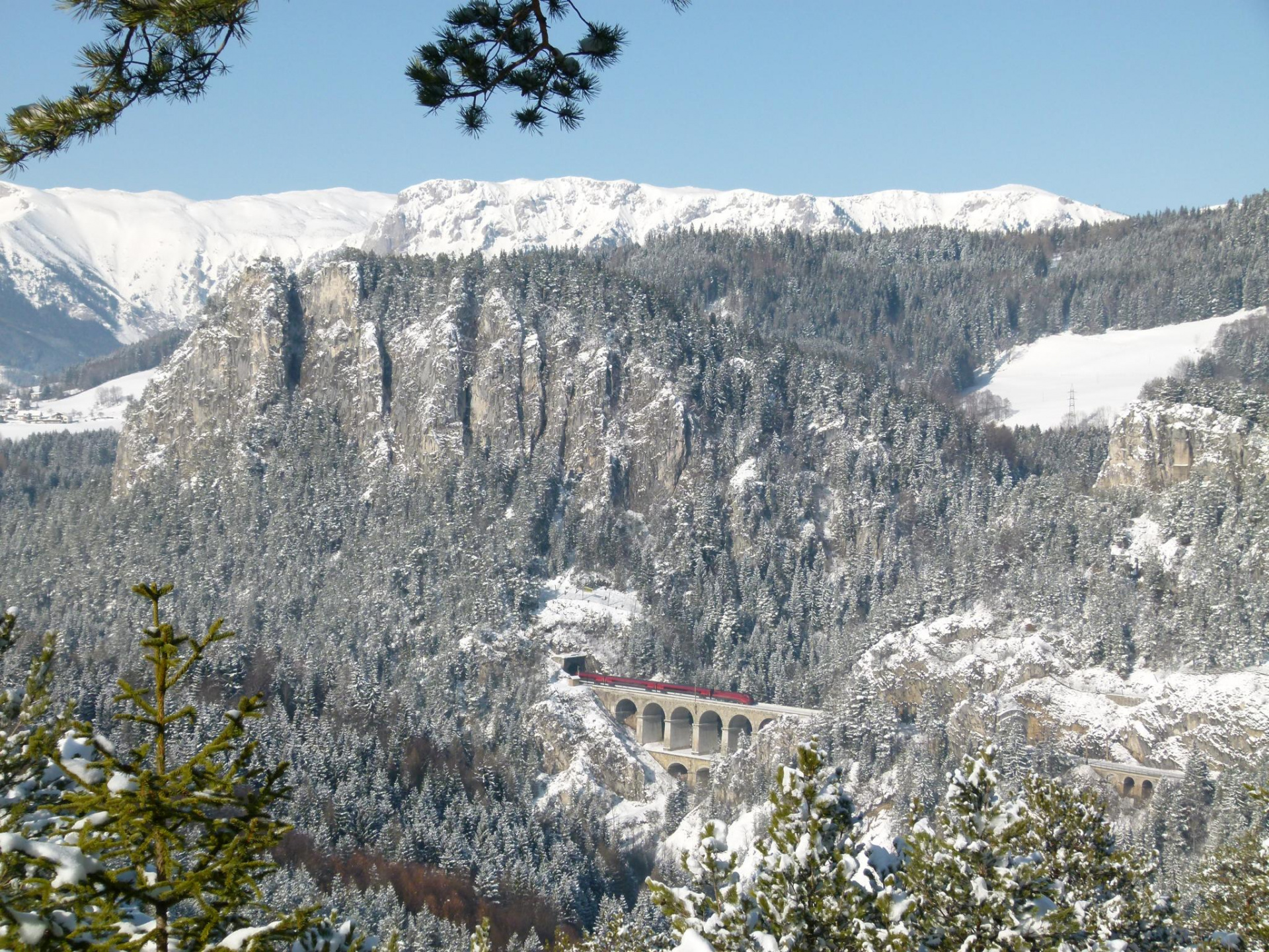 A 950 méter magas Semmering-hágón át vezet Európa legrégebbi hegyi vasútvonala, az UNESCO kulturális világörökséghez tartozó, egyedülálló semmeringi vasút. Télen a fák lombja sem zavarja a vonatból a kilátást, így zavartalanul élvezhetjük a híres látványt.
