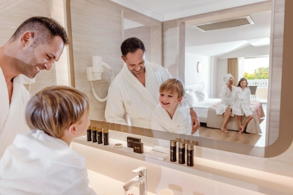 |A szobákat légkondicionáló berendezéssel és fürdőszobával szerelték fel. A vendégeket érkezéskor ajándék várja a szobákban. Ezen kívül van széf és minbár is. Az alapfelszereltséghez tartozik egy tea-/kávéfőző is. Rendelkezésre áll egy vasalókészlet is. Egy telefon, egy TV-készülék, egy ébresztőóra és WiFi is a vendégek kényelmét szolgálja a nyaralás alatt. A szobákban szobapapucs is található. Mozgáskorlátozottaknak kialakított szobák is foglalhatóak. A fürdőszobákban a vendégek rendelkezésére áll egy hajszárító, fürdőköpenyek és egy telefon is. A kényelemhez hozzájárul, hogy a fürdőszobákban kozmetikai cikkek is található(ak). Családi szobát és nem dohányzó szobát is foglalható.