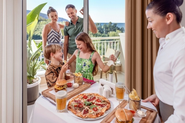 |Reggeli, villásreggeli, ebéd és vacsora külön foglalható. Igény esetén szívesen készítenek gyermekeknek szánt ételeket. A fő étkezések mellett snackeket is kínálnak. A vendégek italfogyasztása az árban benne foglaltatik. Alkoholmentes italok és alkoholos italok is kaphatók.