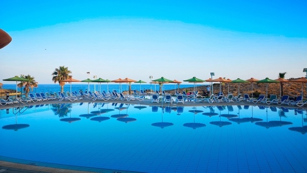 STRAND: Homokos öböl, homokos és zsindelyes, enyhén lankás strand, kb. 200 m-re a szállodától, napernyők és napágyak fizetendők; Nissi, nyilvános, homokos, enyhén lankás strand, kb. 900 m-re a szállodától, megközelíthetőség helyi úton, napernyők és nyugágyak fizetendők (kb. 7,5 EUR/készlet).
