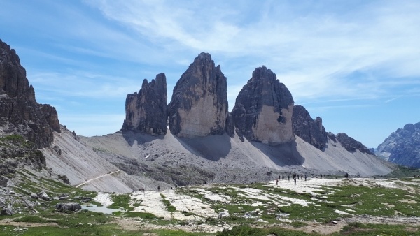 Reggeli után útra kelünk az egyszerűen csak ,,szentélynek" aposztrofált, legtöbbet fotózott ,,Tre Cime di Lavaredo"-hoz. Buszunkkal a 2300 m magasan lévő Auronzó házig utazunk, ahonnan a sziklaóriások tövében folytatjuk utunkat, gyalogosan. Útba ejtünk egy picinyke menedékházat (Lange Alm), majd ebédidőre a Locatelli/Dreizinnen menedékházhoz érünk, ahol helyi specialitásokkal kényeztethetjük magunkat.
