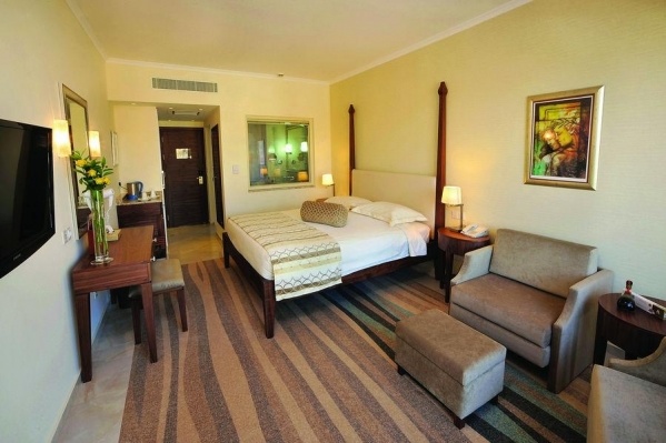 • Szárazföldre néző deluxe szoba: világos, tágas szoba a kert vagy a város felé néző terasszal.
