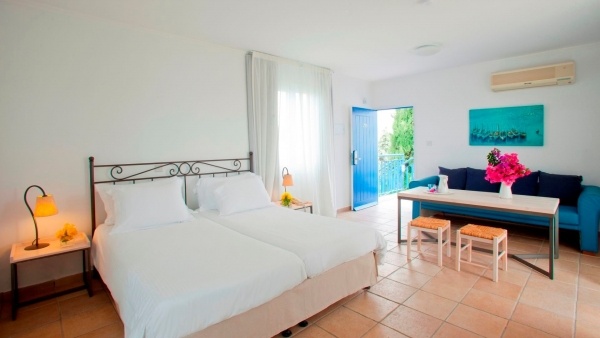 A szállodától kb. 350 m-re található a nyilvános, homokos, enyhén lankás strand, amely az út túloldalán helyezkedik el, és a bejutás helyi úton lehetséges. A napernyők és napozóágyak fizetendők. Ezen kívül a Pachyammos strand is nyilvános, homokos, enyhén lankás, és kb. 750 m-re található a szállodától, szintén az út túloldalán, helyi úton megközelíthető. Itt is fizetős a napernyő és napozóágy használata.