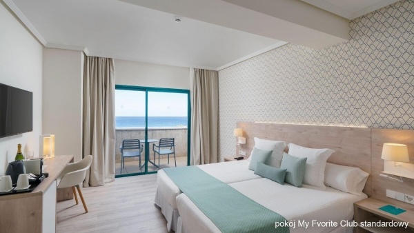 POKÓJ: alapértelmezett: 2 fő (1 pótágy lehetséges), kb. 32 m?, egyedileg szabályozható klíma, fürdőszoba (zuhanyzó, wc; hajszárító), vezeték nélküli internet, műholdas TV, telefon, kis hűtőszekrény, széf, kávé/teás készlet; ingyenes kiságy 2 éves korig érkezés előtti megrendelésre; erkély (asztal és székek), kilátás a környékre; kilátás a medencére vagy elülső kilátás a tengerre, felár ellenében; My Favorite Club alapértelmezett: 3 fő (1 pótágy lehetséges), kb. 32 m2, standard szoba felszereltség, ezen kívül: fürdőköpeny, papucs, kozmetikai készlet, mérleg, smart TV, kapszula kávéfőző, üdvözlő minibár (üdítő, üveg víz, sör), a társalgó és a bár csak a My Favourite Club számára vendégek, éttermekben külön helyiségek, üdvözlő üveg bor bejelentkezéskor; erkély (asztal és székek), elülső kilátás a tengerre; Standard My Favourite Club szoba felár ellenében, a My Favourite Club szobákban karszalag viselése kötelező.