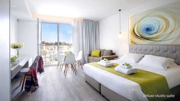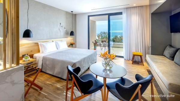 A superior apartmanok (kb. 44 m?) hálószobával és nappalival, konyhasarokkal, káddal és zuhannyal felszerelt fürdőszobával rendelkeznek, ideálisak több fő elhelyezésére. A deluxe stúdió lakosztályok (kb. 36 m?) modern berendezésűek, fürdőszobájukban zuhany, hajszárító, köntös, papucs és kozmetikai készlet található, a konyhasarok és az erkély a kényelmet szolgálja. Az executive lakosztályok (kb. 40 m?) prémium felszereltséggel, Nespresso kávéfőzővel, konyhasarokkal és medencére vagy tengerre néző erkéllyel várják a vendégeket.