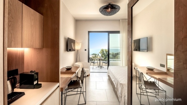 A szálloda elegáns, modern stílusban berendezett szobái és lakosztályai a kényelmes pihenést szolgálják. A prémium kétágyas szobák (kb. 22 m?) légkondicionáltak, fürdőszobával (zuhany, WC, hajszárító, köntös, kozmetikai készlet) felszereltek, és vezeték nélküli internet, műholdas televízió, telefon, széf, kis hűtőszekrény, Nespresso kávéfőző és teakészlet is rendelkezésre áll bennük. Az erkélyről a medencére és a tengerre nyílik kilátás. A tágasabb stúdiók (kb. 29 m?) konyhasarokkal felszereltek, erkélyük a környékre néz.