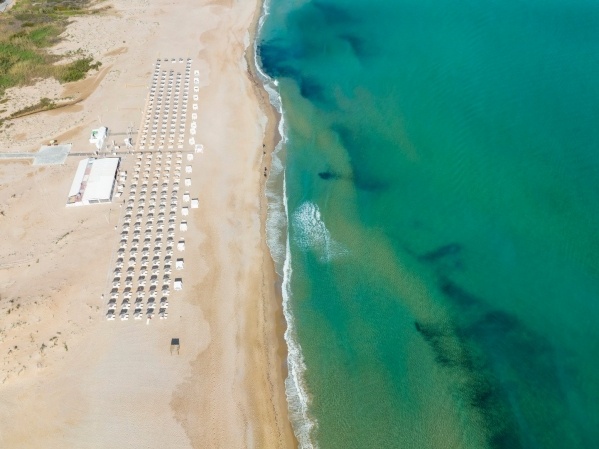 A hotel a homoks/aprókavicsos tengerparton fekszik, melytől csak egy út választja el. A hotel saját strandján napágyak és napernyők ingyenesen állnak a vendégek rendelkezésére. A parton található pavilonok személyre szabott szolgáltatásokkal (külön felár ellenében) biztosítják a meghitt pihenést.
