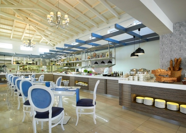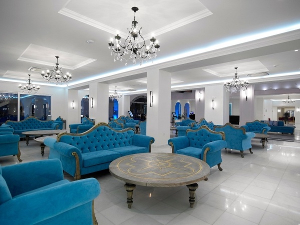 Lobby, recepció, lift, éttermek (főétterem, olasz, seafood, görög, grill, mediterrán, ázsiai), bárok (lobbybár, poolbár, snackbár, pezsgő- és koktélbár), 4 kültéri medence (felnőtt és gyermek), egy beltéri medence (fűtött, kizárólag 16 éven felüliek részére), csúszdák felnőttek és gyermekek részére, animációs programok napközben és este, AURA Spa & Wellness (kezelések térítés ellenében), fitness center, szauna,élő zene, esti showműsorok, minidisco, ajándékboltok
