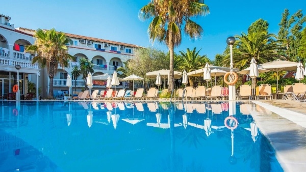 A több épületből álló szállodakomplexum a sziget északi részén található, kb. 3 km-re Roda üdülőhelytől, (ingyenes szállodabusz), kb. 6 km-re Acharavitól, kb. 36 km-re a repülőtértől, üzletek és éttermek kb. 150 m-re a szállodától.