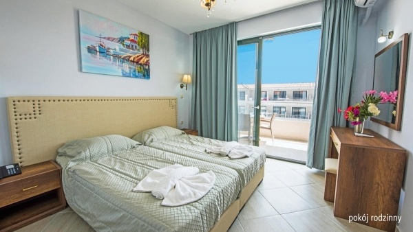 Családi szobák akár 4 fő részére, (új épület) saját fürdőszobával (fürdőszoba, hajszárító, WC), légkondicionálóval, SAT/TV-vel, széffel, hűtőszekrénnyel; erkéllyel vagy terasszal. 2 légteresek, a fő hálószobában két különálló ággyal, másik helyiségben egy különálló ágy és egy kanapéágy, melyeket egy ajtó köt össze.