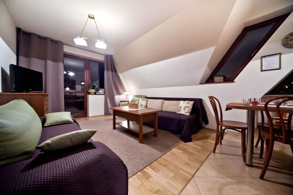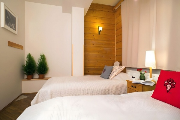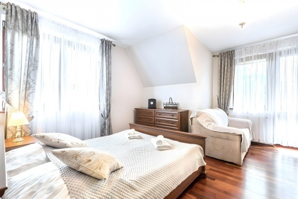Bystra Villában található apartman hálószobával és erkéllyel 4 fő elhelyezésére alkalmas, alapterülete körülbelül 45-48 m?. A fűtött apartmanban külön hálószoba és ajtóval elválasztott nappali található. A fürdőszoba káddal vagy zuhanyzóval, WC-vel, hajszárítóval és mosógéppel felszerelt. A konyhasarok vízforralóval, tűzhellyel, hűtőszekrénnyel és mosogatógéppel rendelkezik. A vendégek kényelmét vezeték nélküli internet, televízió, vasalókészlet, valamint erkéllyel ellátott részleges kilátás a Giewontra biztosítja. Ugyanitt elérhető egy 6 fős apartman is, amely két hálószobával, erkéllyel és hasonló felszereltséggel rendelkezik. A hálószobák és a nappali szintén ajtóval elválasztottak, az erkélyről pedig a Giewontra vagy a Gubałówkára nyílik kilátás.
