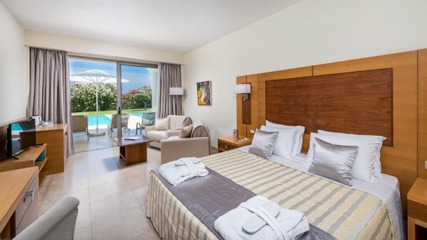 - Deluxe Junior-suitek - tengerre és medencére néző tgerasz, külön hálószoba és nappali tolóajtóval elválasztva, külön közös medencével, 13 éven aluli vendégek részére nem foglalhatók