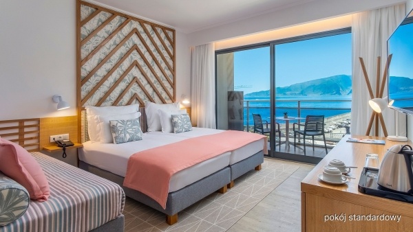 Standard szoba Kétfős, kb. 20 m?-es, elegáns kialakítású, légkondicionált szoba. Fürdőszoba káddal vagy zuhanyzóval, WC-vel és hajszárítóval felszerelt. A szobában vezeték nélküli internet, televízió, telefon, kávé- és teakészlet található. Igény esetén, előzetes kérésre, kiságy biztosított 2 éves korig. A szobához erkély tartozik asztallal, székekkel és ruhaszárítóval. Tengerre néző kilátás elérhető. Térítés ellenében használható széf és minibár (fogyasztás szerint fizetendő).