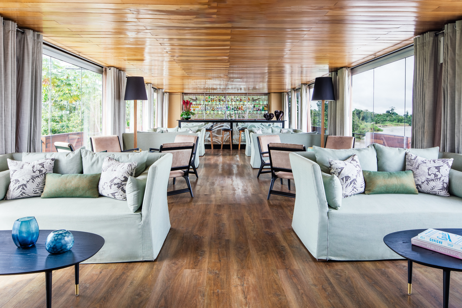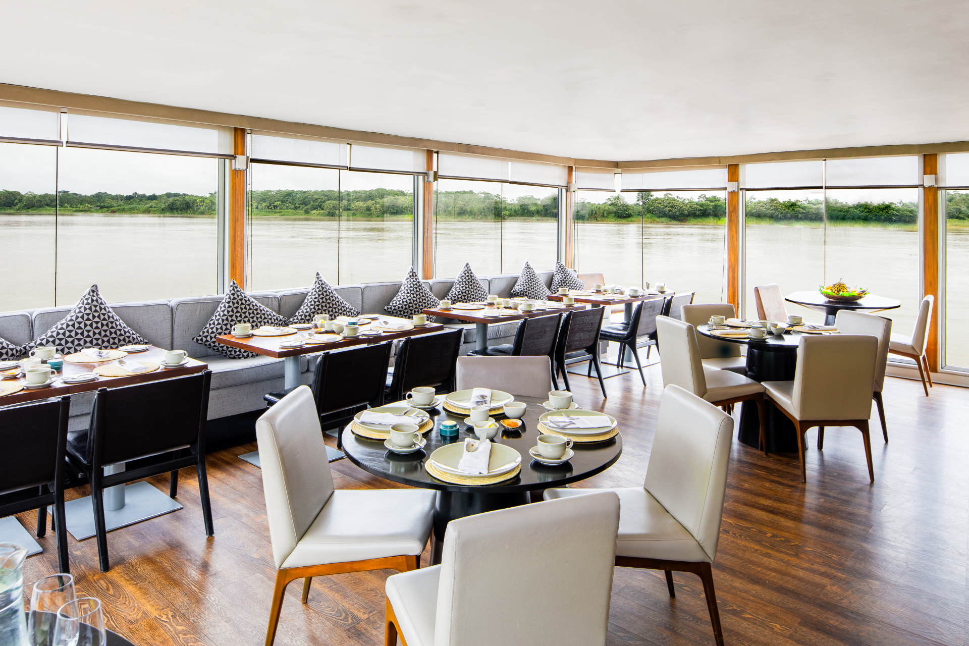 A fedélzeten található 16 tágas suite mennyezetig érő ablakokkal nyújt maximális kilátást a fenséges Amazonas folyóra és az őserdőre. A felső fedélzet rengeteg kényelmi szolgáltatást nyújt, mint például egy jacuzzit, beltéri társalgót és bárt, továbbá egy kültéri kilátót is. Az étkezőben a vendégek a perui konyha legjobbait kóstolhatják meg, Pedro Miguel Schiaffino, Peru egyik legkiválóbb séfje által készített átfogó menüvel, amelyet a perui Amazonas termékei és alapanyagai ihlettek.