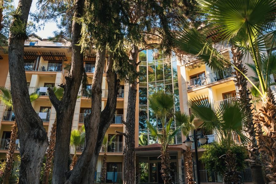 ELHELYEZKEDÉS: Kemer központja kb. 17 km • Antalya belvárosa kb. 60 km • Antalya repülőtér kb. 70 km • a szálloda egy kb. 33.000 m²-es területen helyezkedik el • a közeli városok helyi busszal (dolmuš) vagy taxival könnyen megközelíthetők