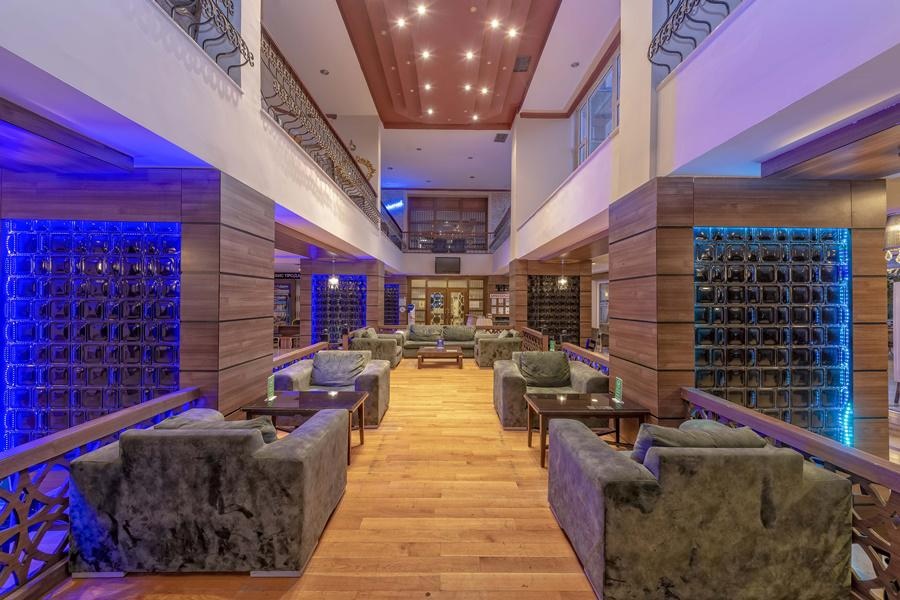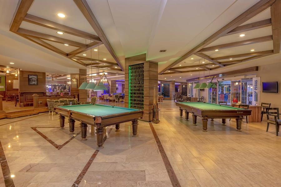 SZOLGÁLTATÁSOK: kültéri medencék napernyőkkel és napozóágyakkal • beltéri medence • vízicsúszdák • főétterem • bárok (lobby, medence, tengerpart, diszkó) • animációs programok • sportprogramok • esti show-műsorok • élőzene • diszkó • fitneszterem • asztalitenisz • aerobik • vízilabda • darts • strandröplabda • teniszpálya • törökfürdő • szauna • wifi