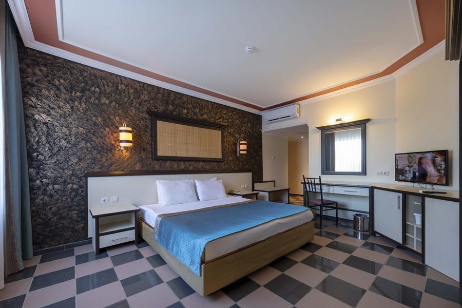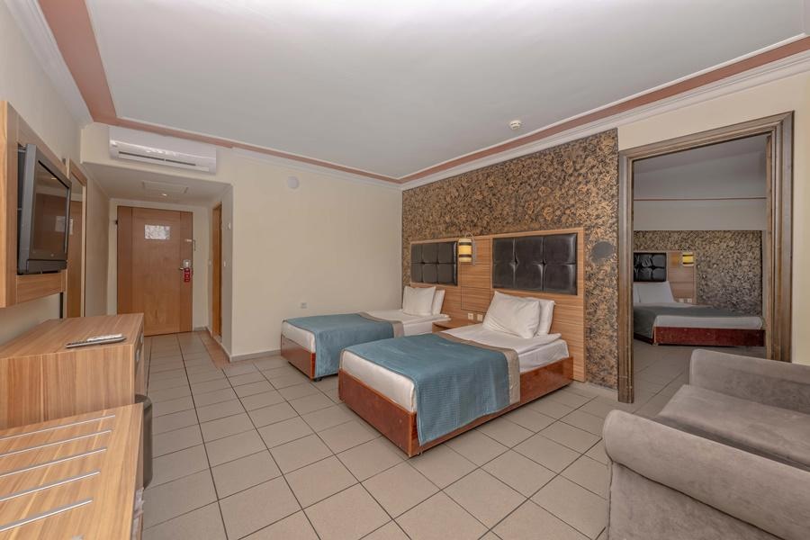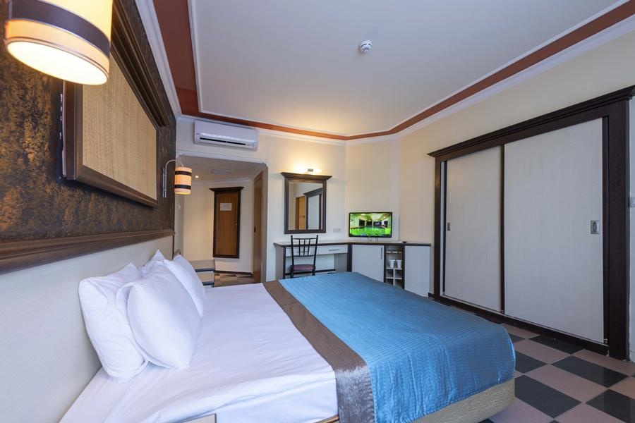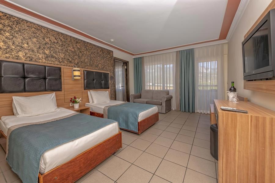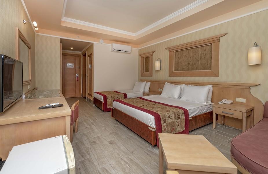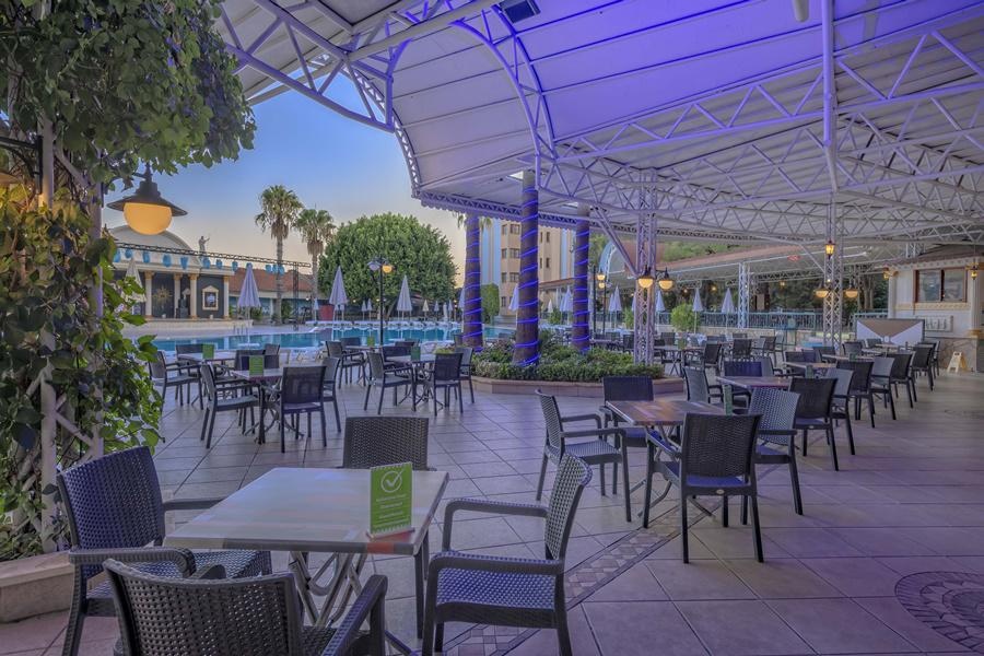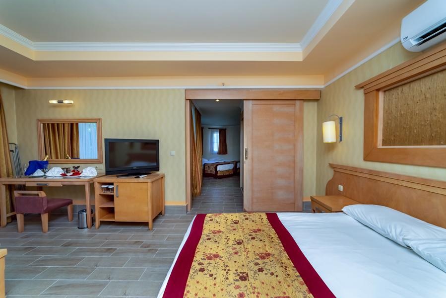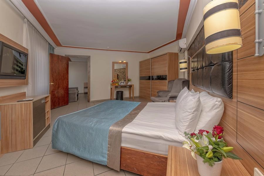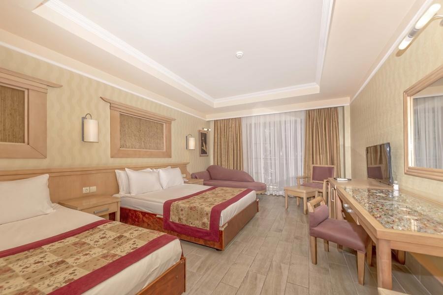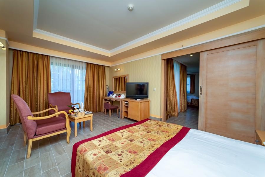 ELLÁTÁS: ultra all inclusive • 10:00–02:00 között • svédasztalos reggeli, ebéd és vacsora • késői reggeli • snackek • gözleme (török lepény) • kávé, tea és sütemények • fagylalt meghatározott időpontokban • à la carte étterem (török konyha) – tartózkodás alatt egyszeri látogatás, előzetes foglalással • minden helyi és néhány import alkoholos és alkoholmentes ital • minibár (érkezéskor üdítőkkel feltöltve)