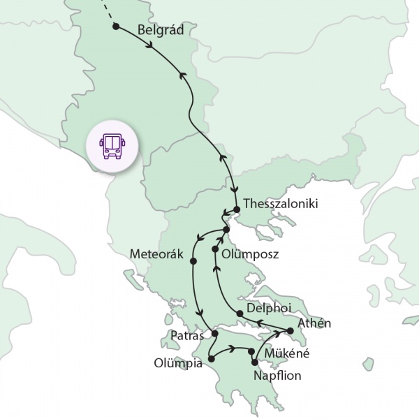 Utazásunk során olyan híres helyeket keresünk fel, melyek átfogó képet adnak az ókor történelmével kapcsolatban. Mindezt változatos környezetben, a nagyvárosoktól a hegyeken át a tengerpartokig.