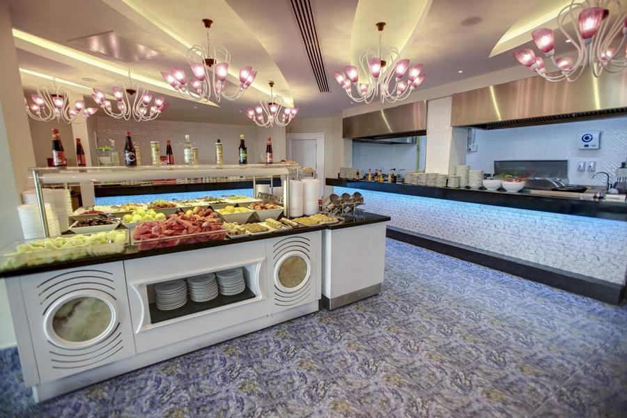 ELLÁTÁS: ultra all inclusive • 00:00-24:00 • svédasztalos reggeli, ebéd és vacsora • korai és késői reggeli • snackek • kávé, tea és sütemények • fagylalt • à la carte éttermek, 1 alkalommal a tartózkodás alatt, előzetes foglalás szükséges • minden helyi és néhány import alkoholos és alkoholmentes ital • minibár