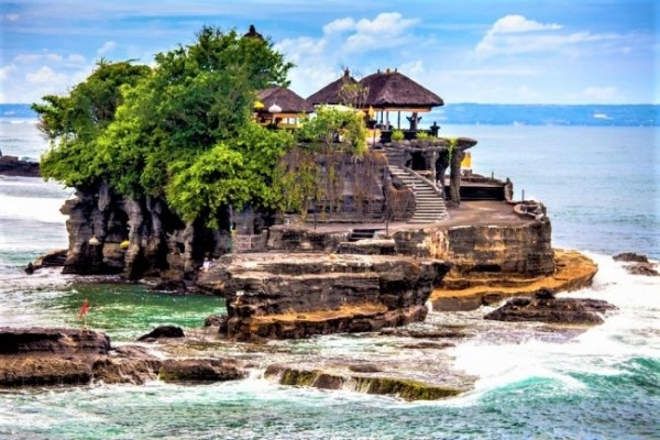 A sziget déli részére, Nusa Duába indulunk; útközben megtekintjük Bali egyik legismertebb látnivalóját, a tengerből kiemelkedő sziklán épült Tanah Lot templomot. Megérkezünk az arany homokos tengerparton épült szállodánkba, ahol három éjszakát töltünk.