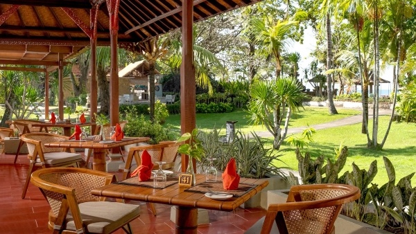 A szálloda étteremválasztéka széleskörű és változatos. A Cempaka étterem/bár a medencénél található, ahol ? la carte étkezési lehetőségek várják a vendégeket, indonéz és balinéz étkezési különlegességekkel. A Ratna étterem/bár büfé formájú étkezést kínál, elsősorban tengeri ételekkel és grillezett fogásokkal. A Soka étterem/bár a tengerparton helyezkedik el, és nemzetközi konyhát kínál büfé formájában. Emellett két bár is rendelkezésre áll: a Rijasa Lobby Bar és a Sriwedari Sunken Bar. Az All Inclusive ellátás 24 órán keresztül elérhető, reggelit 7:00-10:30 között, ebédet 13:00-14:30 között, vacsorát pedig 19:00-21:30 között kínálnak büfé formájában a választható éttermekben. Snackek 16:30-17:30 között állnak rendelkezésre a kijelölt helyeken. A Soka étteremben/bárban alkoholmentes italok és helyi alkoholos italok 24 órán át elérhetők. A 24 órás all inclusive karszalag viselése kötelező a szolgáltatások igénybevételéhez.