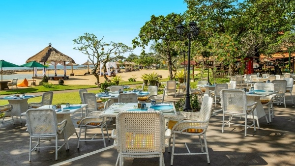 A szálloda étteremválasztéka széleskörű és változatos. A Cempaka étterem/bár a medencénél található, ahol ? la carte étkezési lehetőségek várják a vendégeket, indonéz és balinéz étkezési különlegességekkel. A Ratna étterem/bár büfé formájú étkezést kínál, elsősorban tengeri ételekkel és grillezett fogásokkal. A Soka étterem/bár a tengerparton helyezkedik el, és nemzetközi konyhát kínál büfé formájában. Emellett két bár is rendelkezésre áll: a Rijasa Lobby Bar és a Sriwedari Sunken Bar. Az All Inclusive ellátás 24 órán keresztül elérhető, reggelit 7:00-10:30 között, ebédet 13:00-14:30 között, vacsorát pedig 19:00-21:30 között kínálnak büfé formájában a választható éttermekben. Snackek 16:30-17:30 között állnak rendelkezésre a kijelölt helyeken. A Soka étteremben/bárban alkoholmentes italok és helyi alkoholos italok 24 órán át elérhetők. A 24 órás all inclusive karszalag viselése kötelező a szolgáltatások igénybevételéhez.