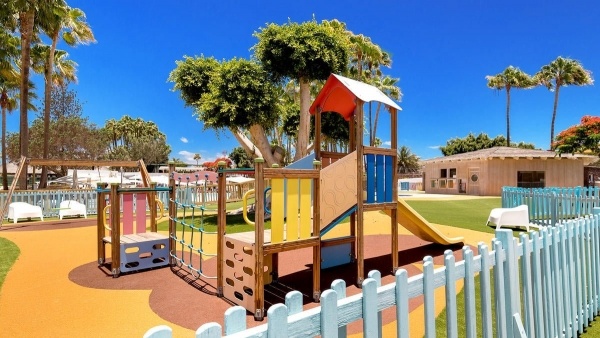 Playa del Inglés nyilvános, széles, homokos strandja 2 km-re található, mely napi több alkalommal megközelíthető ingyenes hotel transzferrel. A kék zászlóval kitüntetett strand strandszervízzel és bárral rendelkezik. Igénybevehető térítés ellenében napernyők és napozóágyak (9 EUR/nap).
