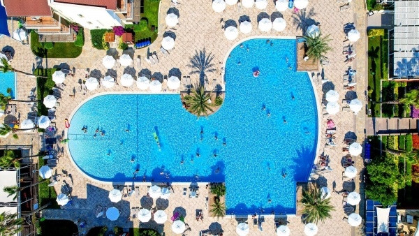 Evrenseki szállodai negyedében, kb. 8 km Side központjától, kb. 600 m a boltoktól és bároktól, kb. 11 km Manavgattól. Távolság a repülőtértől kb. 59 km.