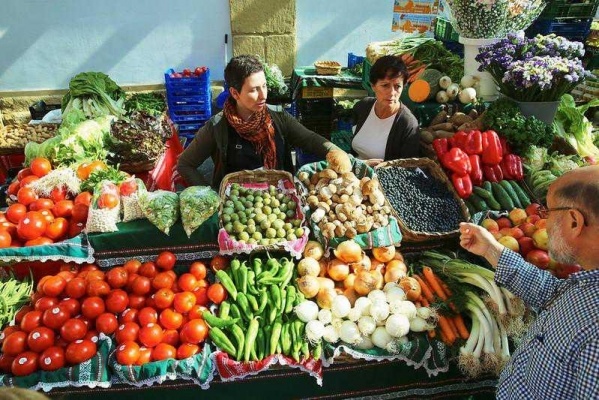 a sétát és bevásárlást egy piacon, helyi szakáccsal