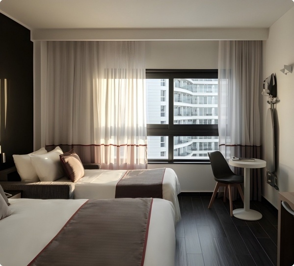 A standard szobák körülbelül 28 m?-esek, két fő részére alkalmasak, kanapéval pótágyazhatók. Légkondicionáltak, zuhanyzós fürdőszobával, hajszárítóval, vezeték nélküli internettel, okos TV-vel és vasalószettel felszereltek. Kilátásuk a környékre nyílik, felár ellenében széf és minibár is igénybe vehető. A felsőbb szobák hasonló felszereltségűek, de erkély vagy terasz is tartozik hozzájuk, asztallal és székekkel. A superior tengerre néző szobák a felsőbb szinteken helyezkednek el, erkélyük vagy teraszuk a tengerre nyújt kilátást.